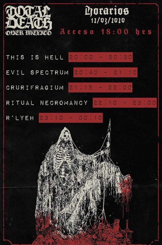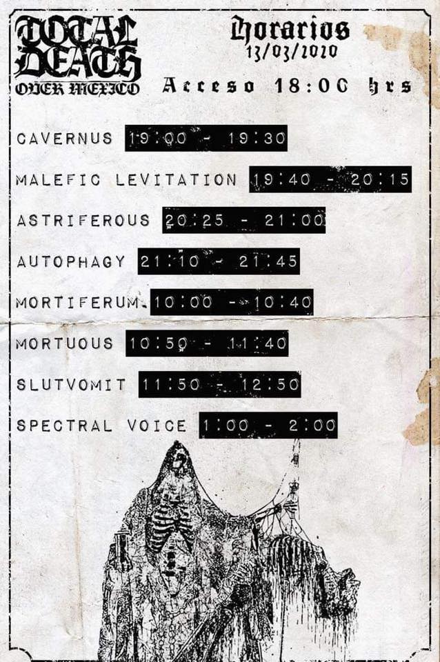 A pesar de que algunas bandas se vieron obligadas a cancelar su presentación en el festival especializado Total DEATH Over México III debido a la situación del Covid_19, la mayoría de ellas ya se encuentran en Ciudad de México listas para devastar el Foro San Rafael en este evento con duración de cuatro días iniciando el día de hoy.