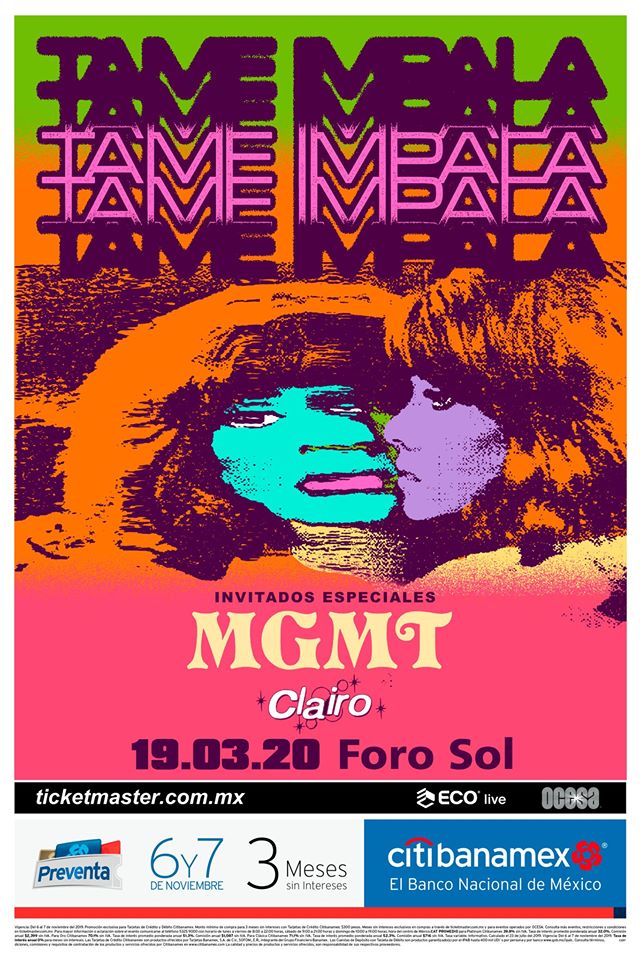 Tame Impala anuncian que regresarán a México para su concierto más grande hasta la fecha, ahora en el Foro Sol de la Ciudad de México. Este concierto marca el regreso de la banda al país después de su concierto como cabeza de cartel en el Festival Corona Capital Guadalajara. Para este concierto Tame Impala tendrá dos invitados muy especiales: MGMT y Clairo.